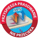 La couche 100 % métallisée renvoie la vapeur et la chaleur dans le tissu, ce qui accélère le repassage et empêche la condensation de l’eau sous la planche pour une surface propre et sèche.