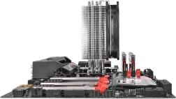 Le refroidisseur est conçu pour des processeurs avec un TDP jusqu’à 150 W, garantissant des températures stables en jeu comme en multitâche intensif. L’aérodynamisme amélioré des pales et les coins en caoutchouc du ventilateur réduisent les vibrations et le bruit, pour un fonctionnement silencieux sans compromis.