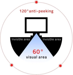 Le filtre de confidentialité QOLTEC empêche efficacement les regards latéraux indésirables, de sorte que le contenu de l’écran reste sécurisé en open space, en déplacement ou dans des espaces avec des clients. Les micro-persiennes avancées assurent une lecture confortable de face dans un angle d’environ 60°, tandis qu’à partir d’environ 30°, l’image s’assombrit fortement et devient illisible. La surface mate antireflet élimine en outre les reflets et la réduction de la lumière bleue diminue la fatigue oculaire lors des longues sessions de travail.