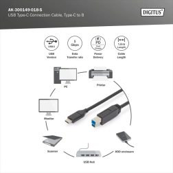 Ce câble USB 3.0 de qualité avec connecteurs USB‑C (mâle) – USB‑B (mâle) est conçu pour relier des appareils hôtes (ordinateur, ordinateur portable, hub USB) à des périphériques équipés d’un port USB‑B, tels que boîtiers de disques durs externes, scanners ou imprimantes. Grâce à la norme USB 3.0, il atteint un transfert SuperSpeed jusqu’à 5 Gbit/s, soit jusqu’à 10× plus rapide que l’USB 2.0, permettant des sauvegardes rapides et un travail fluide avec des fichiers volumineux.