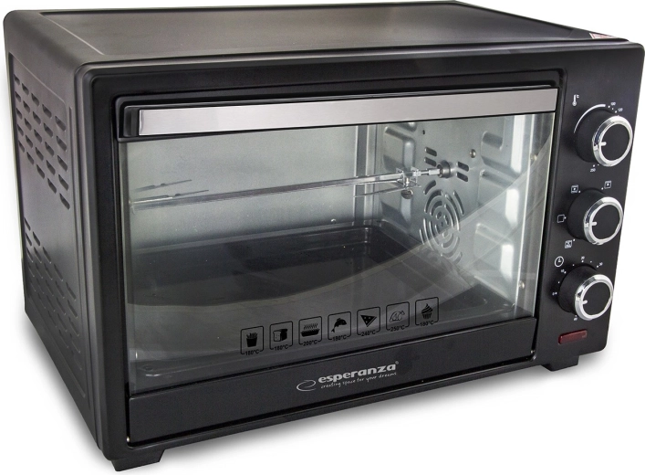 Le mini four Esperanza NAPOLI avec convection aide à préparer facilement une délicieuse pizza, des plats gratinés, des frites ou des viandes et poissons rôtis. Il comprend une fonction rôtisserie pour cuire facilement un poulet entier.