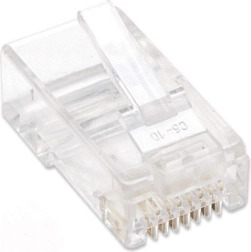 Connecteur RJ45 UTP fiable pour conducteur plein catégorie 5e avec contacts dorés et garantie à vie. Idéal pour toutes les applications réseau.