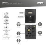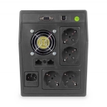 Grâce au contrôle par microprocesseur, l’UPS offre une grande fiabilité, des alarmes sonores et des protections essentielles : contre la surcharge, la décharge profonde et la surcharge de charge. La fonction de démarrage à froid permet la mise sous tension même sans présence du secteur. Sont disponibles 4 prises SCHUKO et les interfaces USB/RS232 pour la gestion, ainsi que RJ45 pour la protection des communications réseau.
