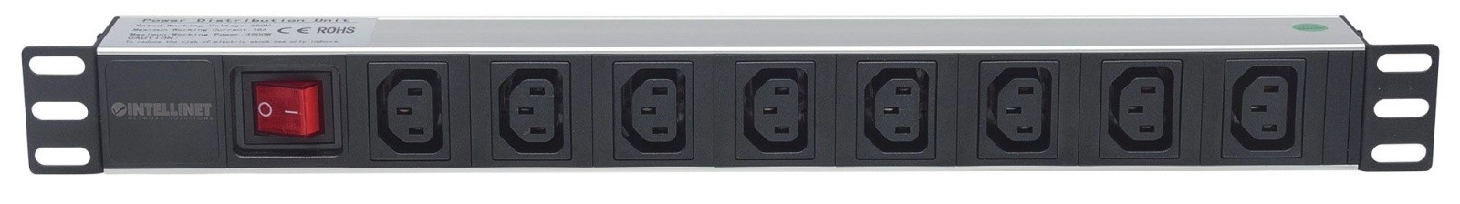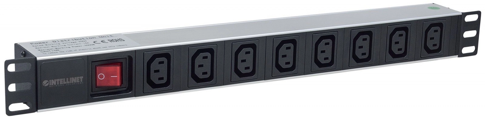 Barrette d’alimentation pour rack 19, 1U, 110V-250V/10A, 8 prises C13, câble de 2 m.
