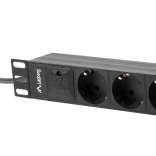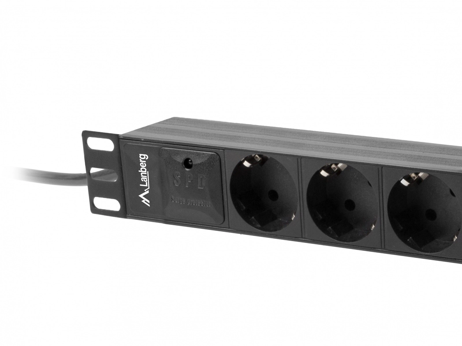 La PDU LANBERG est conçue pour un montage horizontal dans des racks 10" (1U) et fournit une alimentation stable avec un accent sur la sécurité et la longévité. Le boîtier en aluminium assure robustesse et bonne dissipation thermique, tandis que la protection contre les surtensions et le disjoncteur automatique protègent les appareils connectés.
