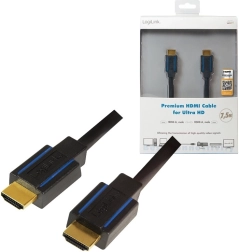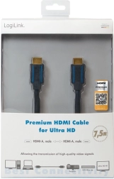 Câble HDMI Ultra HD 7.5m Premium offre une excellente transmission audio et vidéo. Grâce aux connecteurs plaqués or, il assure une haute qualité de transmission du signal.