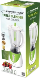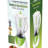 Le mixeur de table pratique Esperanza Pina Colada prépare rapidement des smoothies, des cocktails et des milkshakes, et gère aussi la glace pilée. Grâce à sa puissance de 350 W, ses 3 vitesses et sa fonction Turbo, vous obtenez une texture lisse en un instant. Les lames en acier inoxydable, le bol en plastique de 1,5 l et les ventouses antidérapantes assurent une utilisation sûre et confortable.
