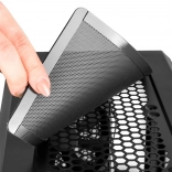 Il est possible d'installer trois disques SSD 2,5" et deux disques HDD 3,5" sans utiliser d'outils. Les disques SSD sont montés des deux côtés, ce qui ne bloque pas le flux d'air.