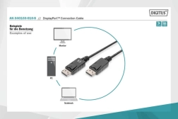 Équipé de attaches pour une fixation solide et sécurisation de la connexion durant l’utilisation. Supporte un transfert de données à une vitesse conforme à la norme DisplayPort 1.1 et est compatible avec la résolution 1080p.