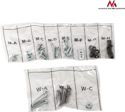 L’emballage comprend un ensemble clair et organisé de vis, chevilles et entretoises pour une installation fluide et rapide sur différents types de murs.