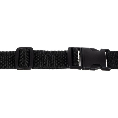 La sangle en polyester résistant se règle de 76 à 104 cm. La boucle plastique à quick‑release facilite la mise en place et le retrait rapides.