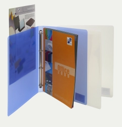 Classeur de présentation pratique au format A4 en polypropylène extra robuste offrant durabilité, couverture avant transparente pour insérer une page de titre et une mécanique à 4 anneaux pour un rangement sécurisé des documents. Idéal pour les présentations, l’archivage et les documents d’entreprise.