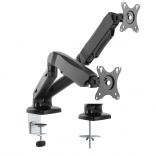 Maximisez l’espace et le confort avec le support double IB-MS304-T. Sa construction robuste à vérins à gaz permet un équilibrage facile et précis de moniteurs de poids différents, pour les positionner d’une seule main à la hauteur idéale. Son design fin et ergonomique apporte une apparence propre et professionnelle à votre poste de travail.