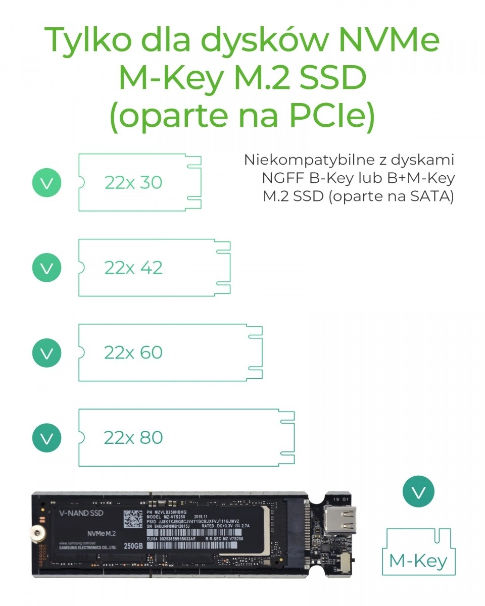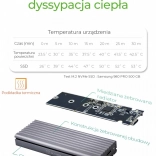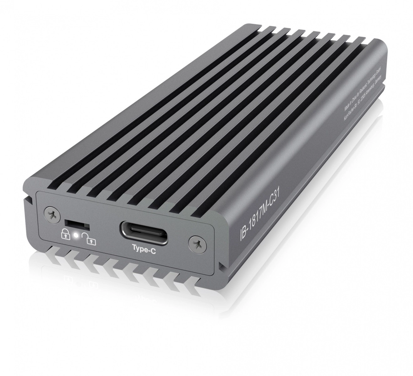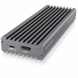 Boîtier en aluminium compact pour SSD M.2 NVMe avec interface USB‑C (USB 3.1 Gen 2) 10 Gb/s et prise en charge PCIe 3.0 x2 jusqu’à ~1000 Mo/s. Offre un refroidissement efficace avec dissipateur et pad thermique, une indication LED claire et une protection en écriture pratique via un commutateur. Compatible avec les longueurs 2230/2242/2260/2280.
