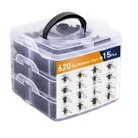 Ensemble de fixations automobiles en organiseur 16 tailles PVC 620 pièces