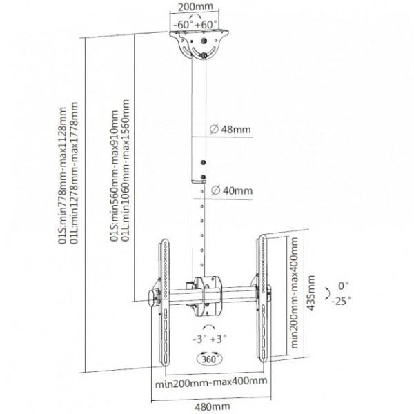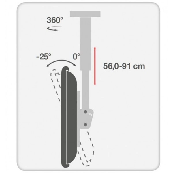Ce support plafond pratique permet une fixation sûre et flexible des téléviseurs et écrans à la maison, au bureau et dans les installations commerciales. Grâce à sa construction en acier robuste et à la compatibilité avec la norme VESA, l’installation est simple et stable. Le système intégré de gestion des câbles garde l’installation propre et professionnelle.