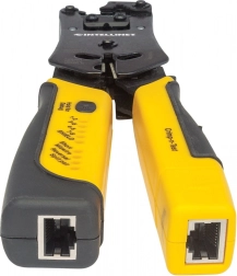 Outil universel professionnel pour sertir les fiches, avec fonctions de coupe et de dénudage, et testeur de câbles.