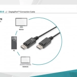 Grâce aux loquets sur les connecteurs, la connexion reste ferme et sûre, sans déconnexion accidentelle. Le câble est compatible avec la norme DisplayPort 1.1a et convient pour connecter des ordinateurs, stations de travail et ordinateurs portables à des moniteurs, projecteurs ou autres afficheurs équipés d’un connecteur DP.