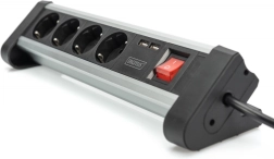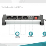 Quatre prises électriques et deux ports USB permettent d’alimenter et de charger plusieurs appareils simultanément, idéal pour les besoins d’un bureau moderne.