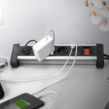Cette barre d’alimentation avancée est un choix idéal pour un usage au bureau comme à la maison. Avec sa construction en aluminium et son élégante combinaison noir/argent, elle offre un excellent rendu visuel tout en apportant une haute fonctionnalité :