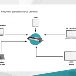 Barre d’alimentation de bureau élégante et fonctionnelle équipée de quatre prises et de deux ports USB, permettant une charge efficace et la connexion simultanée de plusieurs appareils. Grâce à la possibilité de rotation à 290°, elle s’adapte facilement à vos besoins.