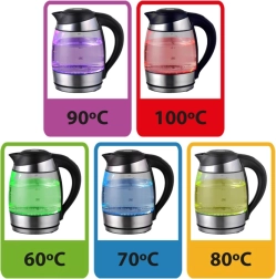 Faites chauffer l'eau exactement comme vous le souhaitez. Grâce aux préréglages 60/70/80/90 °C et ébullition (100 °C), vous préparez facilement thé vert ou blanc, tisanes ou café à la température idéale. Chaque température sélectionnée possède sa propre couleur d'éclairage LED et le choix est confirmé par un signal sonore.