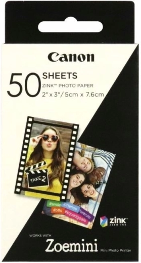 Le papier est entièrement compatible avec les imprimantes Canon Zoemini, Canon Zoemini C, Canon Zoemini S, Canon Zoemini S2 et Canon Zoemini 2, ce qui permet une impression sans souci directement depuis vos appareils mobiles. Le paquet contient 50 feuilles de papier ZINK™ et une feuille SMART SHEET™ qui aide à optimiser la qualité d'impression. Les dimensions compactes du papier sont idéales pour imprimer des photos issues des réseaux sociaux et les partager instantanément.