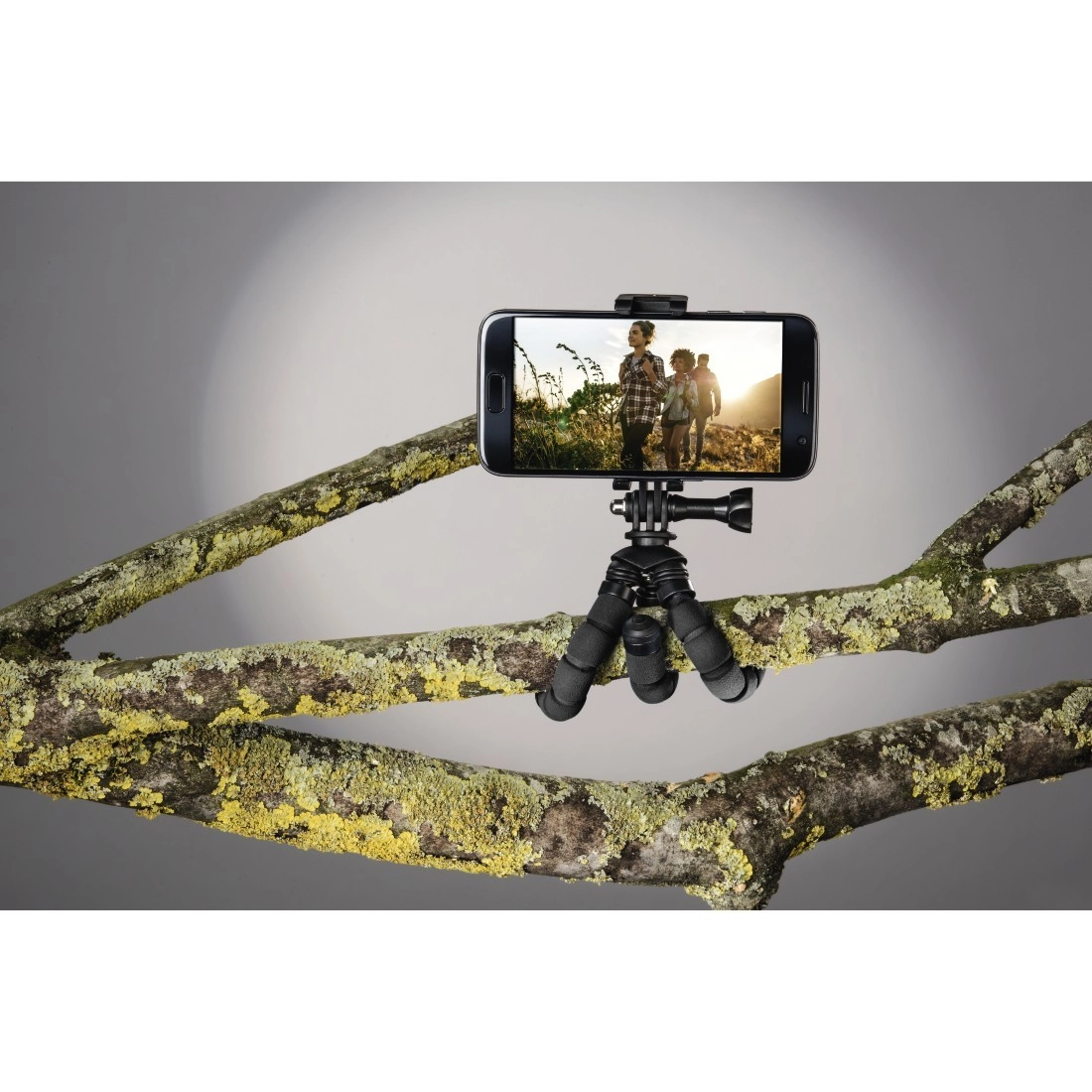 - Pieds flexibles se pliant à 360° pour un positionnement optimal et sécurisé sur divers objets, par ex. rambardes, branches