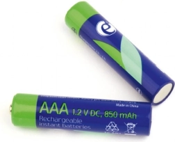 Piles rechargeables AAA fiables d’une capacité de 850 mAh, fournies en blister de 2 pièces. Elles sont préchangées et prêtes à l’emploi, offrent un faible auto-décharge et peuvent être rechargées avec un chargeur NiMH standard. Idéales pour les appareils photo, télécommandes et l’électronique du quotidien.