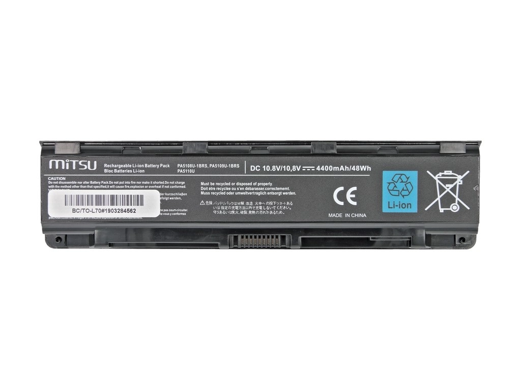 Batterie de remplacement MITSU fiable pour ordinateurs portables Toshiba séries C50, C55, C70 et L70, offrant une capacité de 4400 mAh (48 Wh) et une tension de 10,8–11,1 V. Elle utilise des cellules Li‑ion de qualité classe A, affiche une capacité réellement déclarée, est sans effet mémoire et est dotée de protections multicouches pour un fonctionnement sûr.