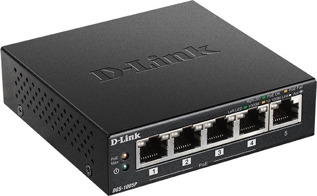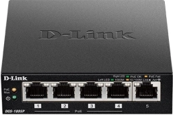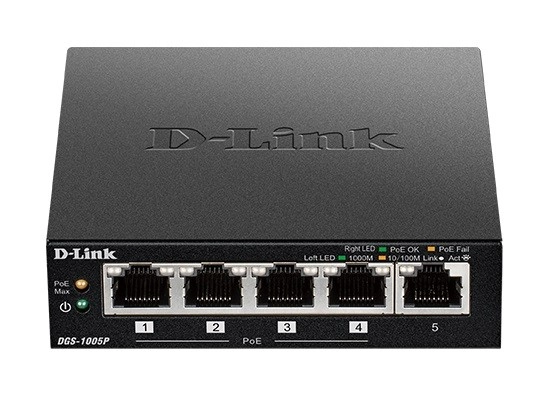 Le commutateur PoE non administrable gigabit à cinq ports DGS-1005P permet de connecter au réseau des appareils compatibles Power over Ethernet (PoE), tels que des points d’accès, des caméras réseau et des téléphones IP. Conçu pour les utilisateurs à domicile et les petites entreprises, le DGS-1005P se distingue par ses dimensions compactes et son fonctionnement silencieux, ce qui le rend idéal pour la plupart des pièces et des bureaux.