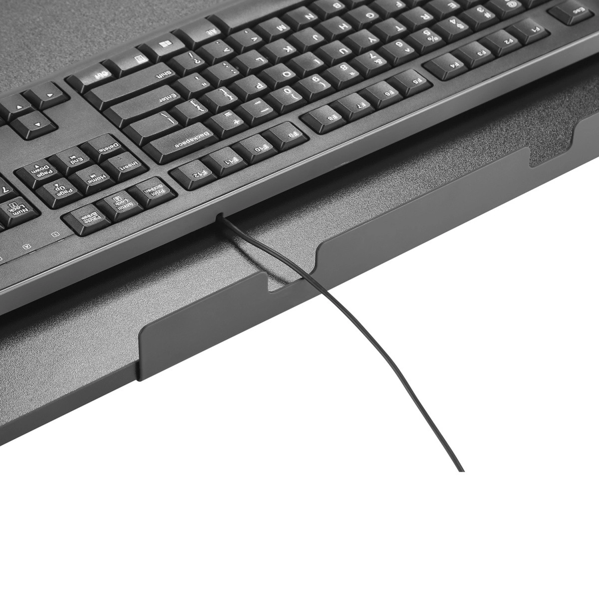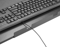 La large surface de l’étagère accueille le clavier et la souris, libère le plateau et aide à maintenir un poste de travail clair et organisé.