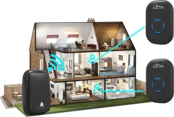 Sonnette sans fil et sans pile avec bouton cinétique et portée jusqu’à 150 m. Elle offre 51 mélodies, 4 niveaux de volume dont le mode silencieux, et un bouton extérieur IP44 pour un fonctionnement fiable par tous les temps.