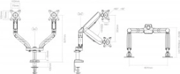 Le support est équipé d’un vérin à gaz, permettant un réglage fluide de la position des moniteurs. Vous pouvez ainsi trouver facilement la position la plus confortable pour votre bureau. Autre avantage : deux connexions USB 3.0 rapides pour relier aisément vos appareils à l’ordinateur. La fonction pivot flexible permet un réglage de -50 à +35 degrés, et l’entraxe maximal des trous de montage est de 100×100 mm.