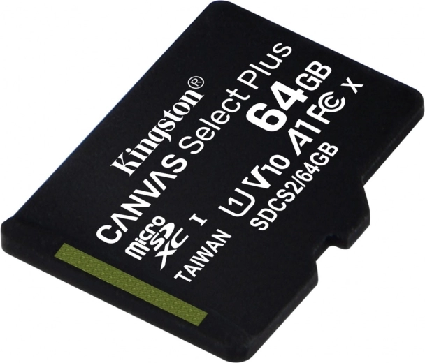 Carte mémoire microSD Kingston Canvas Select Plus rapide et fiable, capacité 64 Go, offrant une vitesse jusqu’à 100 Mo/s, une optimisation pour Android et des performances de classe A1 pour un chargement d’applications plus rapide. Idéale pour les photos et les vidéos Full HD, avec une grande robustesse et une garantie à vie du fabricant.