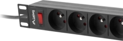 Grâce à la section supérieure des conducteurs du câble, le fonctionnement est fiable même à charge nominale de 16 A. Le châssis en aluminium anodisé augmente la résistance et la durabilité, tandis que les oreilles de montage amovibles et orientables facilitent l’installation dans différentes positions dans le rack.
