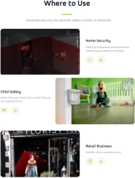 Le GB212 est à la fois une sonnette d’entrée pratique et une alarme simple. Grâce au capteur PIR, il réagit aux mouvements des personnes et des grands animaux, ce qui minimise les fausses alertes. Idéal pour les magasins, bureaux et foyers – à chaque fois que vous avez besoin d’être averti d’une arrivée.