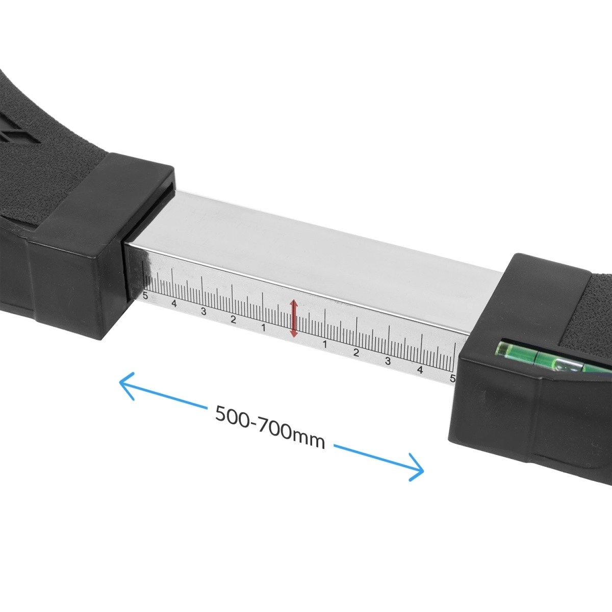 La base est équipée de quatre niveaux à bulle intégrés et d’un réglage de la hauteur, garantissant un réglage précis. C’est un choix idéal pour le déménagement et la mise en place stable de vos appareils.