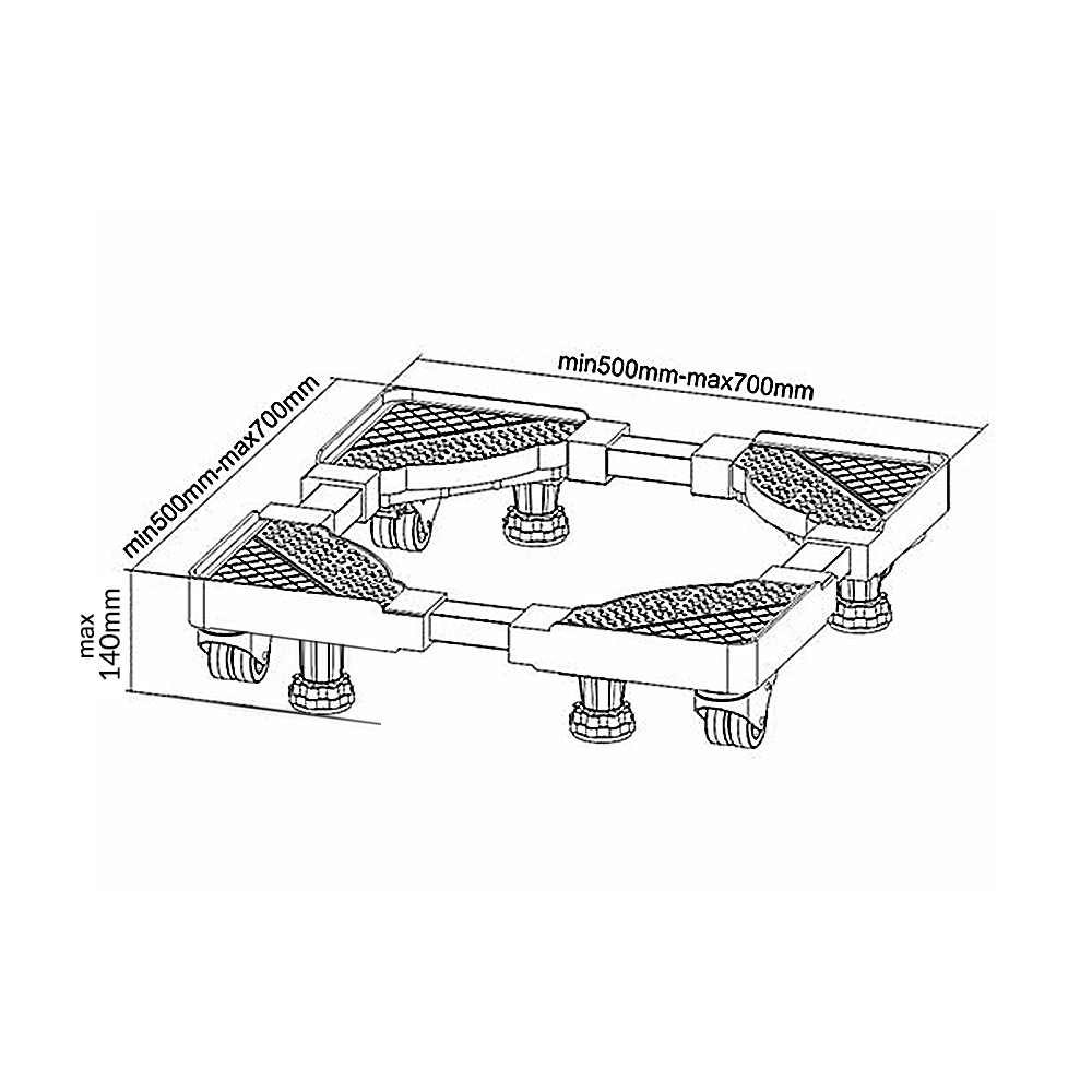 La base peut être ajustée à différentes tailles d’appareils grâce au réglage de la largeur et de la longueur de 50 à 70 cm.