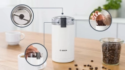 Profitez du parfum et du goût du café fraîchement moulu chaque jour. Le Bosch TSM6A011W est un moulin fiable et facile à utiliser qui, grâce à sa cuve de broyage en inox et à sa lame tranchante à deux ailettes, broie les grains de café rapidement et uniformément. Son corps cylindrique compact s’intègre dans toutes les cuisines et se range aisément.