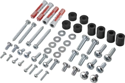 La boîte contient un kit de montage complet incluant des chevilles premium Fischer et un gabarit de perçage – l’installation est rapide et précise.