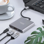NATEC Fowler Mini transforme l’unique port USB‑C de votre appareil en hub universel. Il permet de connecter un moniteur externe via HDMI jusqu’à 4K/30 Hz, d’alimenter simultanément un ordinateur portable ou un téléphone grâce au USB‑C Power Delivery 60 W et d’utiliser USB 3.0 pour relier rapidement périphériques et supports de données. Son boîtier en aluminium résistant et son format compact en font le compagnon idéal en déplacement comme au bureau.