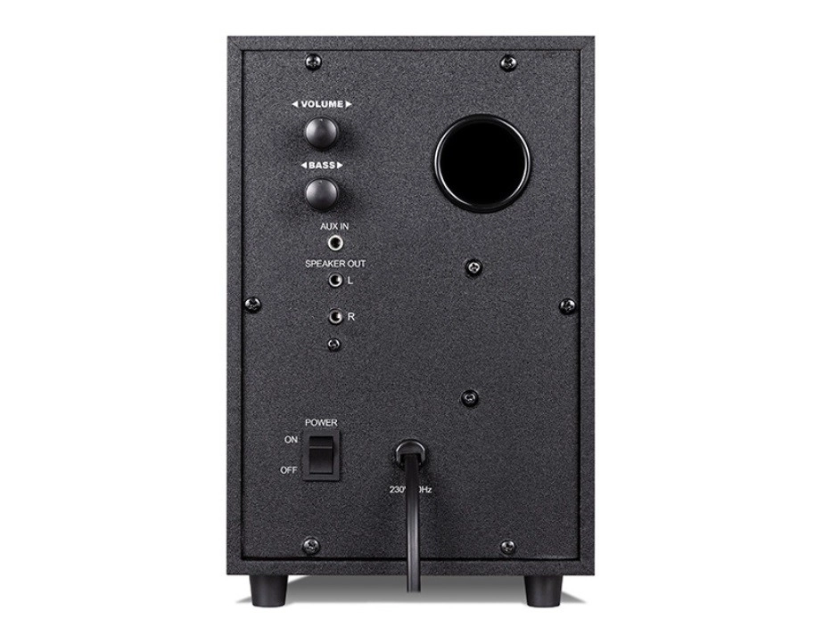 Molette de volume et réglage des basses sur le panneau arrière, et connexion sans fil Bluetooth 5.0 pour une utilisation confortable sans câbles.