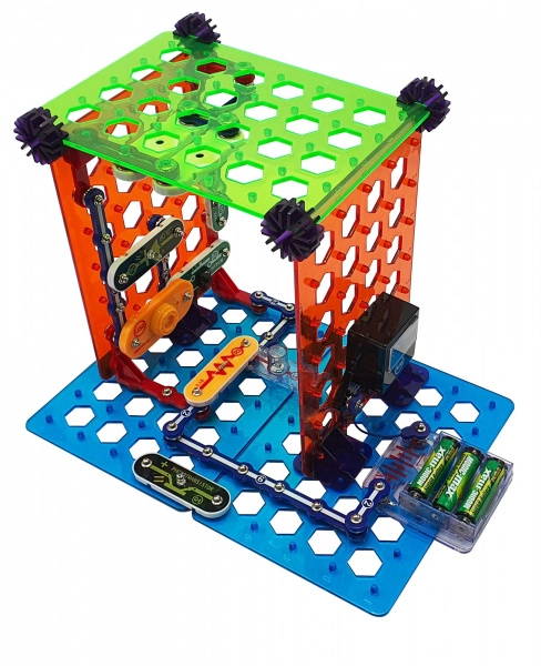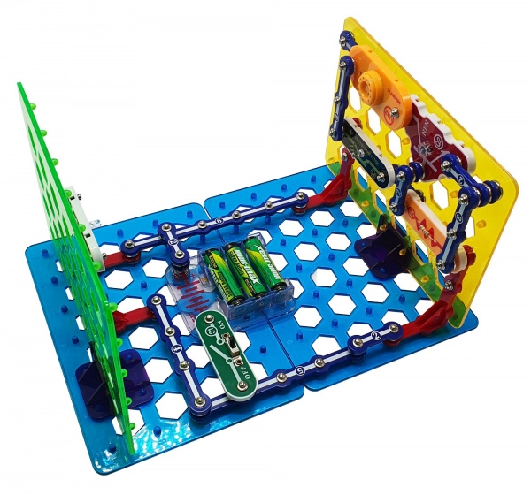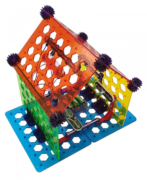 Le kit BOFFIN II Ma maison est idéal pour les enfants dès 8 ans qui souhaitent comprendre les principes de l’électricité et de la maison intelligente. La base est une plaque perforée sur laquelle les pièces se clipsent facilement — sans soudure, en toute sécurité et avec un résultat immédiat. Construisez un éclairage, une alarme, une maison à deux étages, un moulin à vent ou une maison de fête et vérifiez le fonctionnement selon les schémas fournis.
