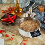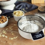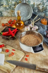 La balance est équipée d’un écran numérique clair, de la fonction tare pour remettre à zéro le poids du récipient, ainsi que de l’arrêt automatique ou manuel pour économiser la batterie. Un bonus pratique est le mode de mesure du volume d’eau et de lait lorsque vous n’avez pas de verre doseur sous la main.