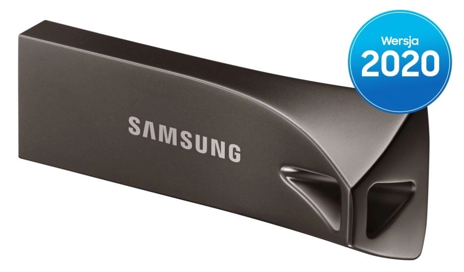 Clé USB Samsung BAR Plus élégante et robuste, capacité 256 Go, offrant un débit de lecture fulgurant allant jusqu’à 300 Mo/s, un unibody métallique moderne et une protection fiable des données dans un format compact Titan Gray.