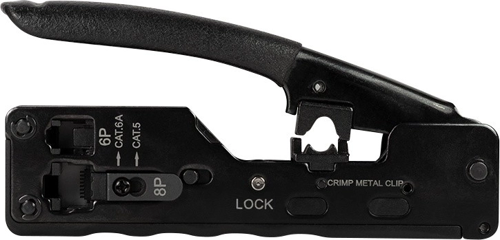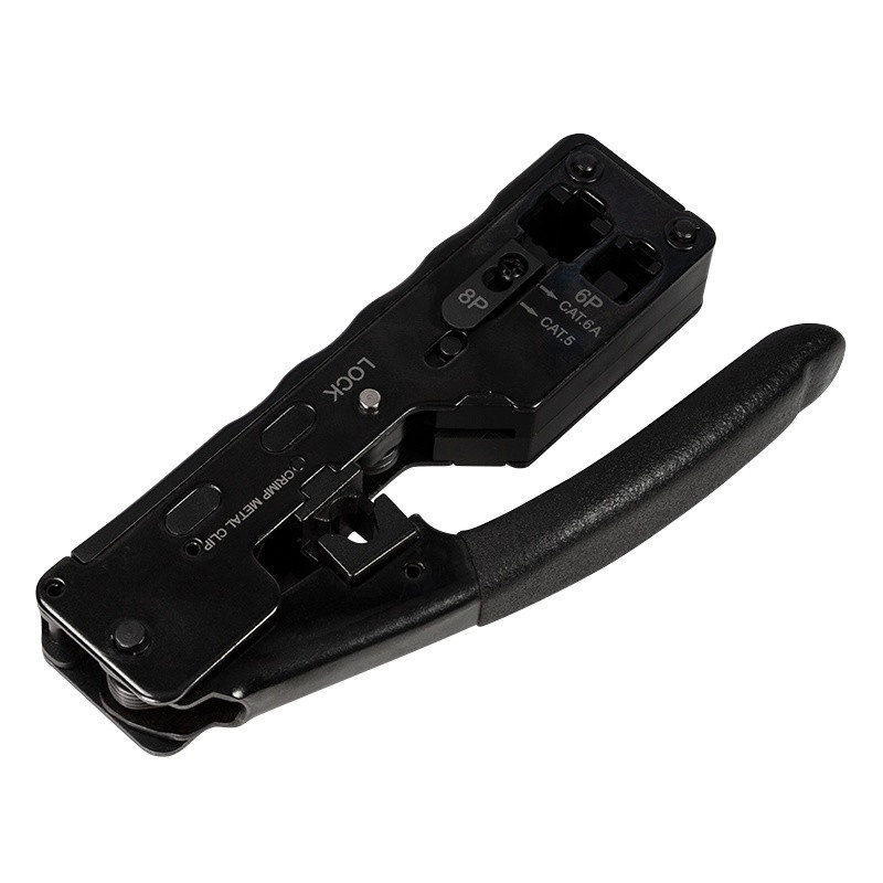 Pince à sertir universelle pour connecteurs téléphoniques et réseau garantissant un montage rapide et fiable des connecteurs RJ11/RJ12 et RJ45 (CAT5e/CAT6/CAT6a/CAT7). Grâce à une construction compacte et robuste, elles tiennent parfaitement en main, permettent un sertissage confortable à la seule force de la main et prennent en charge les connecteurs avec clip métallique.