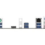 Pour les cartes graphiques, elle propose un slot PCIe 4.0 x16 offrant un débit maximal et d’autres slots d’extension PCIe 3.0. Le stockage est accéléré par Hyper M.2 (PCIe Gen4 x4) et un second M.2 (PCIe Gen3 x2/SATA3) complété par 6× SATA3. À l’arrière, vous trouverez 8× USB 3.2 Gen1, la sortie vidéo via HDMI et le réseau assuré par la Gigabit LAN.