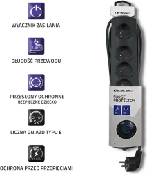 La sécurité est primordiale : la protection contre les surtensions (varistance) protège votre électronique contre les pics de tension, les volets de protection enfants sur toutes les prises renforcent la sécurité du foyer et le matériau PP ignifuge ajoute un niveau de protection supplémentaire. Le fabricant se réserve le droit de modifier les paramètres techniques.