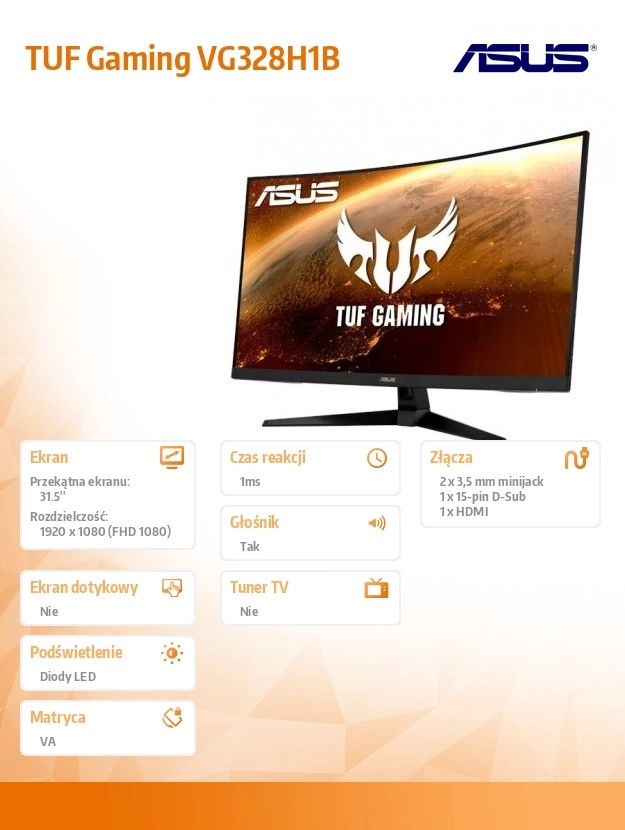Découvrez des expériences visuelles immersives avec le moniteur ASUS VG328H1B. Ce moniteur avec une diagonale de 31,5 pouces et une courbure de 1500R offre une image nette et fluide grâce à une fréquence de rafraîchissement de 165 Hz. Un choix idéal pour les gamers comme pour un usage professionnel.